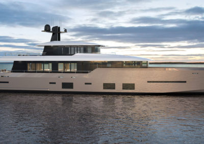 Nous proposons ce magnifique Modern Explorer transocéanique aux lignes tendues et aux performances remarquables. La coque et les superstructures en aluminium sont assez étroites, ce qui lui confère un excellent passage dans la mer et une autonomie de plus de 4000 MN.