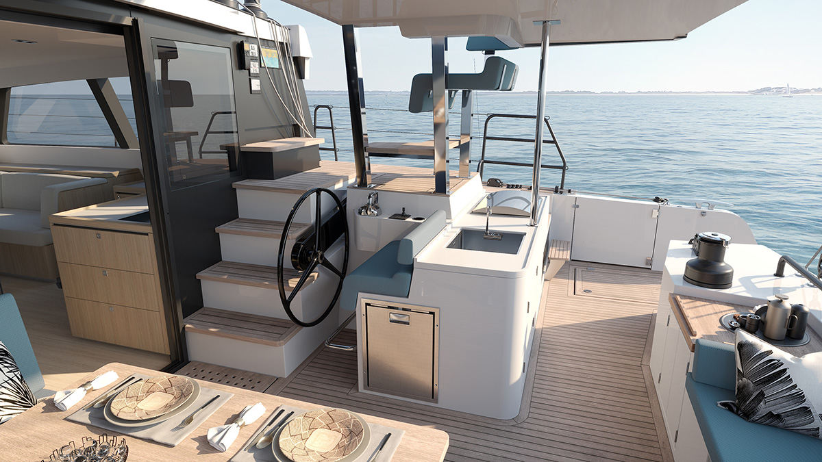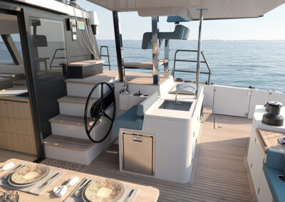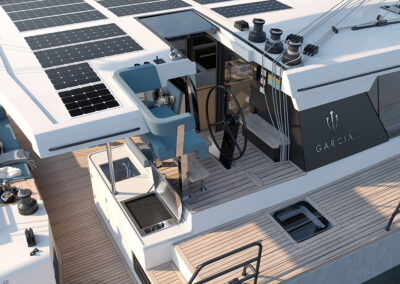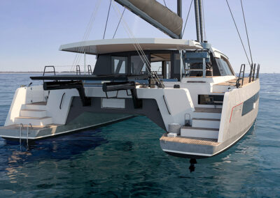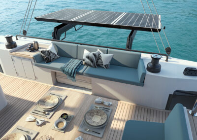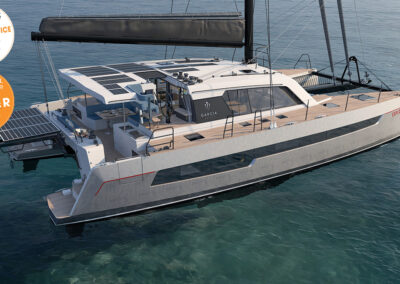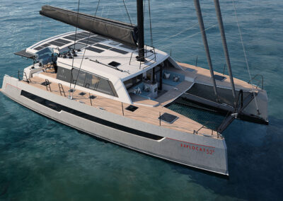 Purpose-built for extended blue-water cruising, the Explocat 52’ is engineered to deliver absolute safety and performance, from high latitudes to tropical waters. Its aluminum hull—recognized as the benchmark material for ocean-going yachts—combines exceptional resistance to impact and fatigue with remarkable lightness. The interior layout has been designed with both space and functionality in mind, offering generous storage volumes for long passages. A true all-terrain 4×4 of the seas.