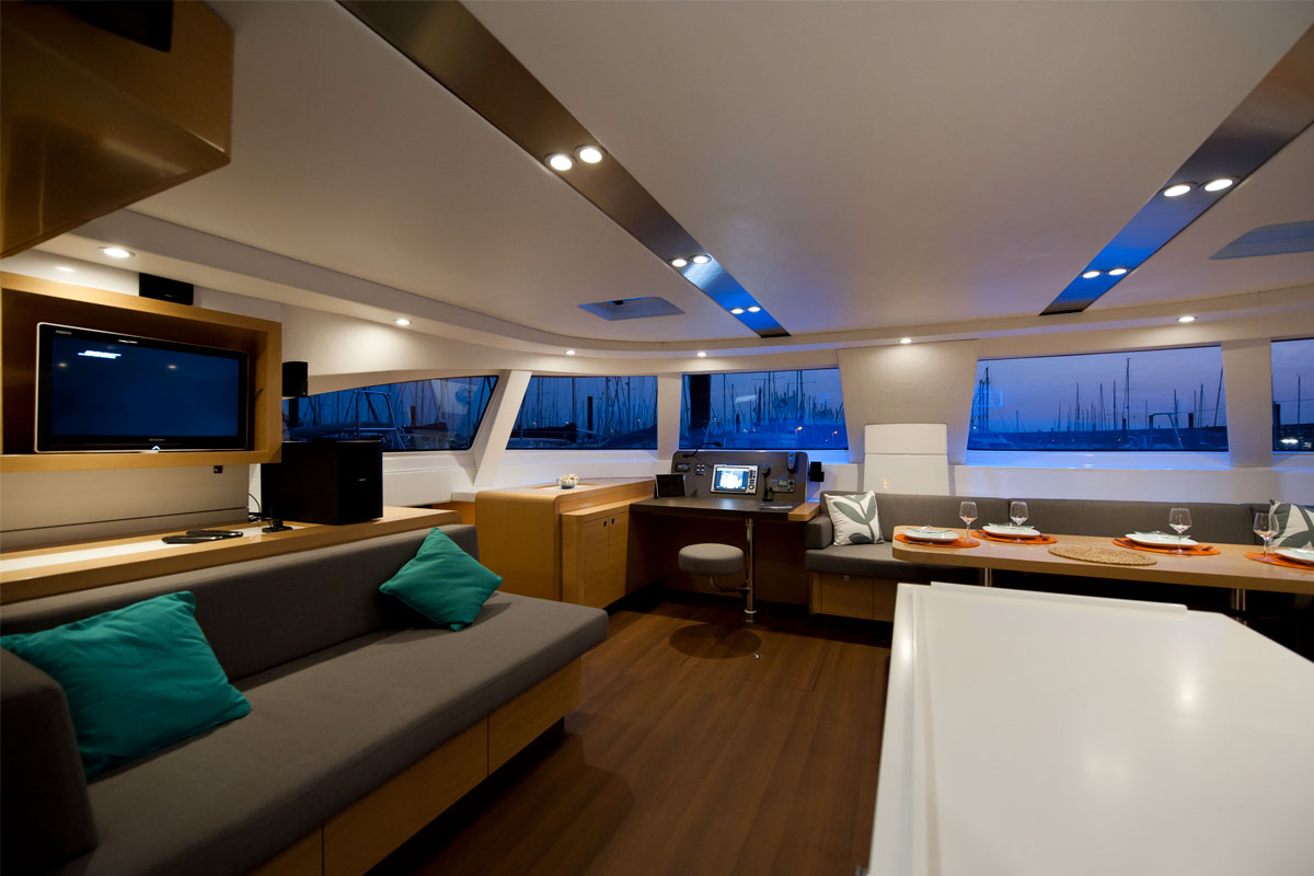 Ce plan Lombard est le navire amiral de la gamme Nautitech. Nous avons apporté un design élégant, des aménagements modulaires ainsi que des intégrations poussées au niveau multimédia à ce bateau dont la gamme est connue pour son excellent rapport habitabilité/performance. Deux versions sont disponibles : style « Loft » ou style « classique » avec à chaque fois des agencements au choix de 3 à 5 cabines. Le style « Loft » privilégie l’espace avec notamment une nacelle dégagée. Ce catamaran s’inscrit bien dans son époque et conserve l’esprit marin de la gamme de Nautitech.