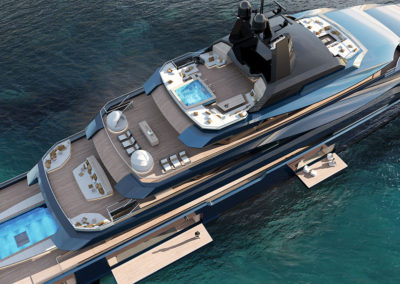 Les superstructures sont véritablement sculptées. La Starlight 106M est disponible à la vente et prêt à etre construit dans quelques chantiers de renom.